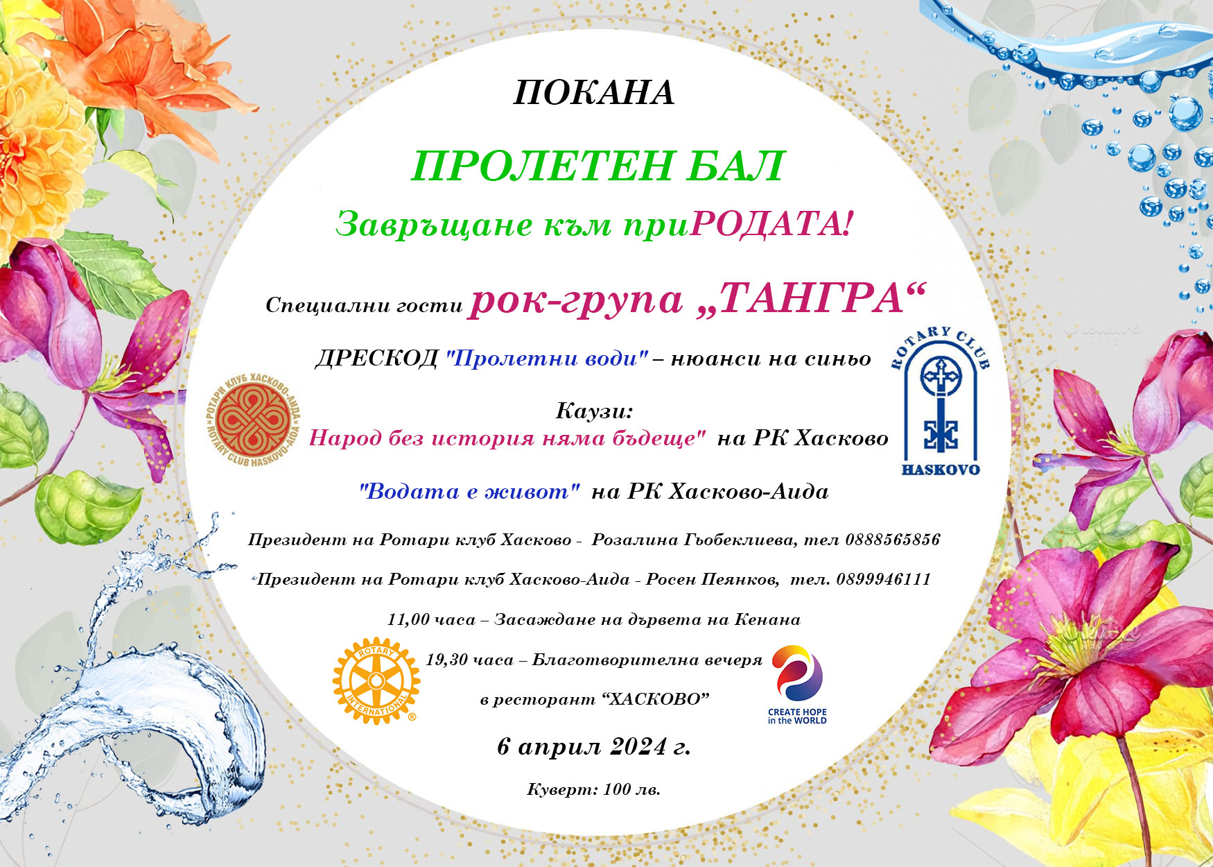 4. Да се повеселите на нашия Пролетен бал, да споделим заедно трепетите на пролетта и да покажем едно голямо задружно Ротарианско семейство, как може да подобри света!