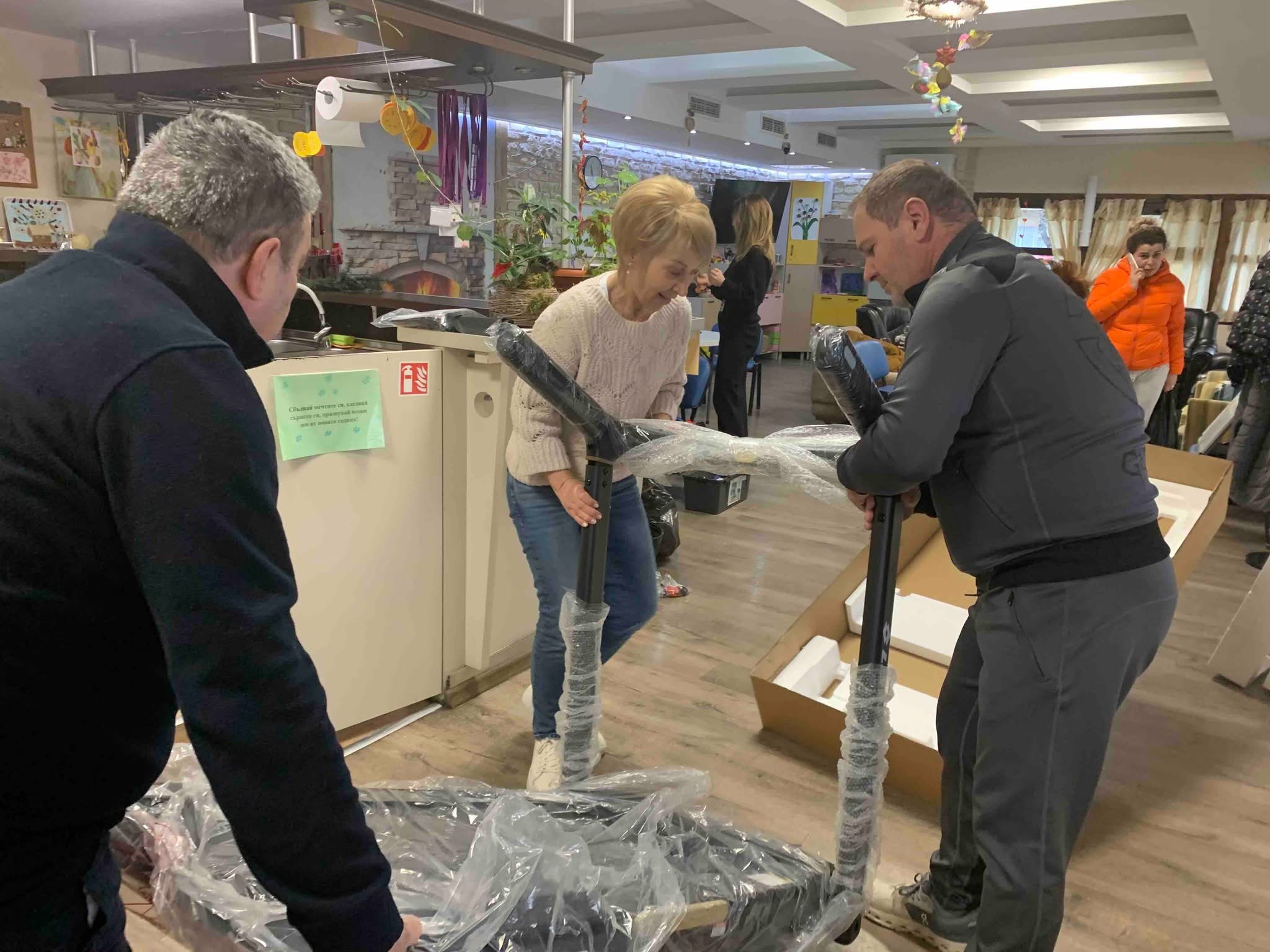 Другата посока на проекта ни отведе в Социалната градина за възрастни с деменция „Грижовник“ с два адреса, в които човечността и грижата са в основата на всяко действие. Тук подкрепата ни бе насочена към създаване на по-богата, активна и вдъхновяваща среда. Предоставихме им бягащи пътеки за подобряване на двигателната им активност в студените месеци на годината, множество малки музикални инстументи, грънчарско колело с подходяща периферия, предстои изграждането на външно пространство с цветна градина и солидни пейки. Чрез творчески дейности, музика и възможност за споделени мигове на открито, възрастните хора получават възможности за когнитивна стимулация, синзорна стимулация, поддържане на фината моторика, запазват социалните си умения и получават емоционален комфорт, но и нещо безценно – усещане за принадлежност, спокойствие и запазено достойнство. Защото дори когато паметта избледнява, нуждата от човешка близост остава.